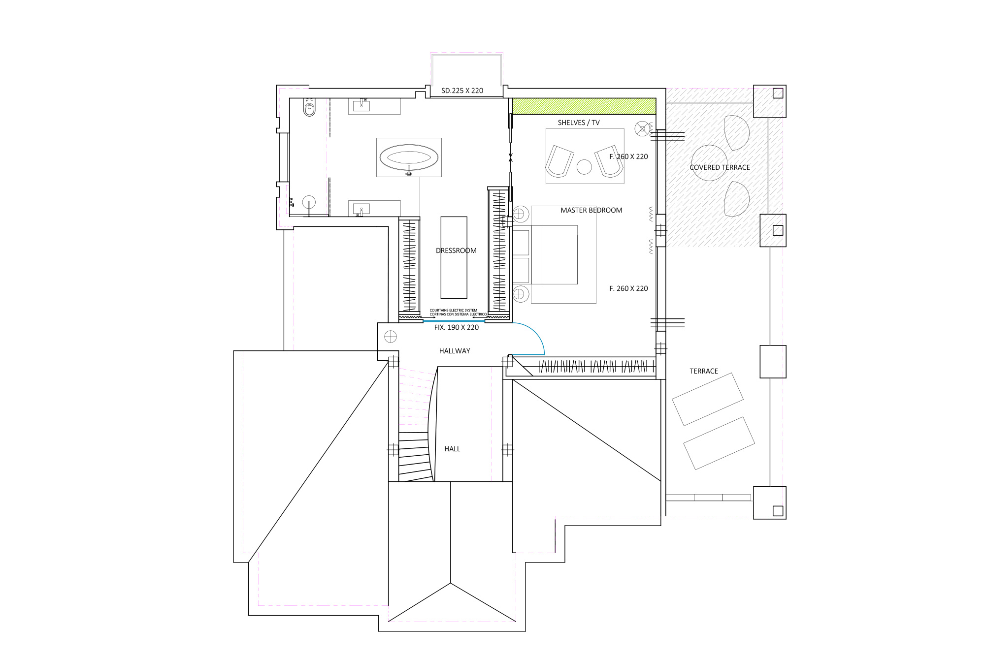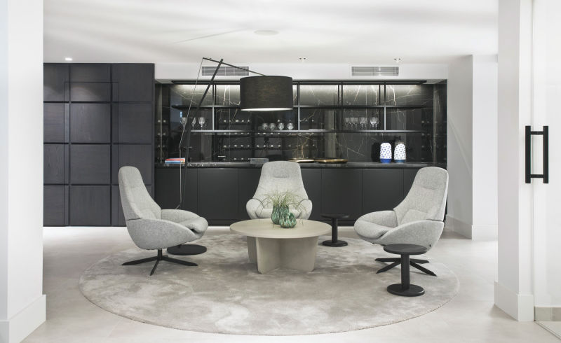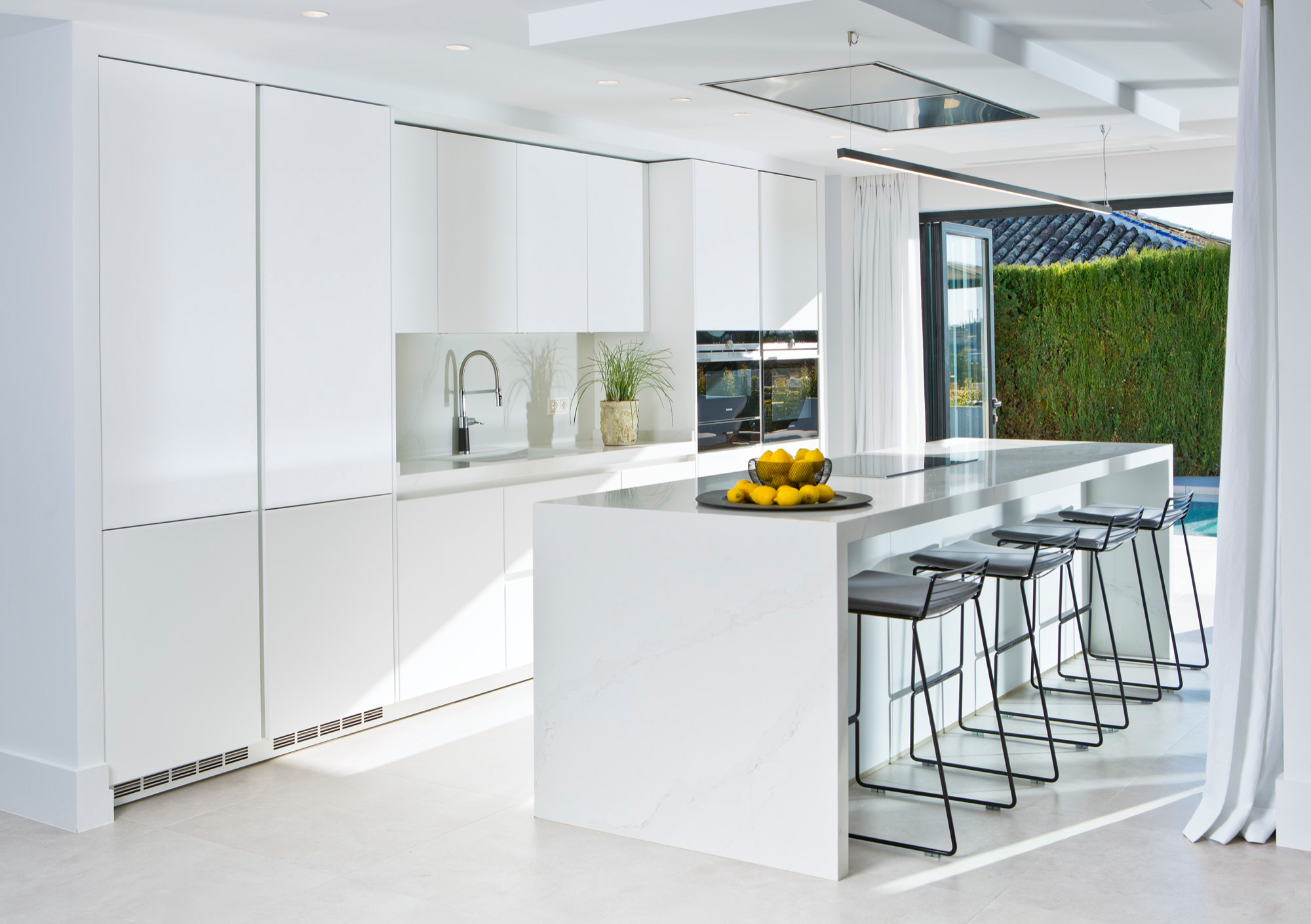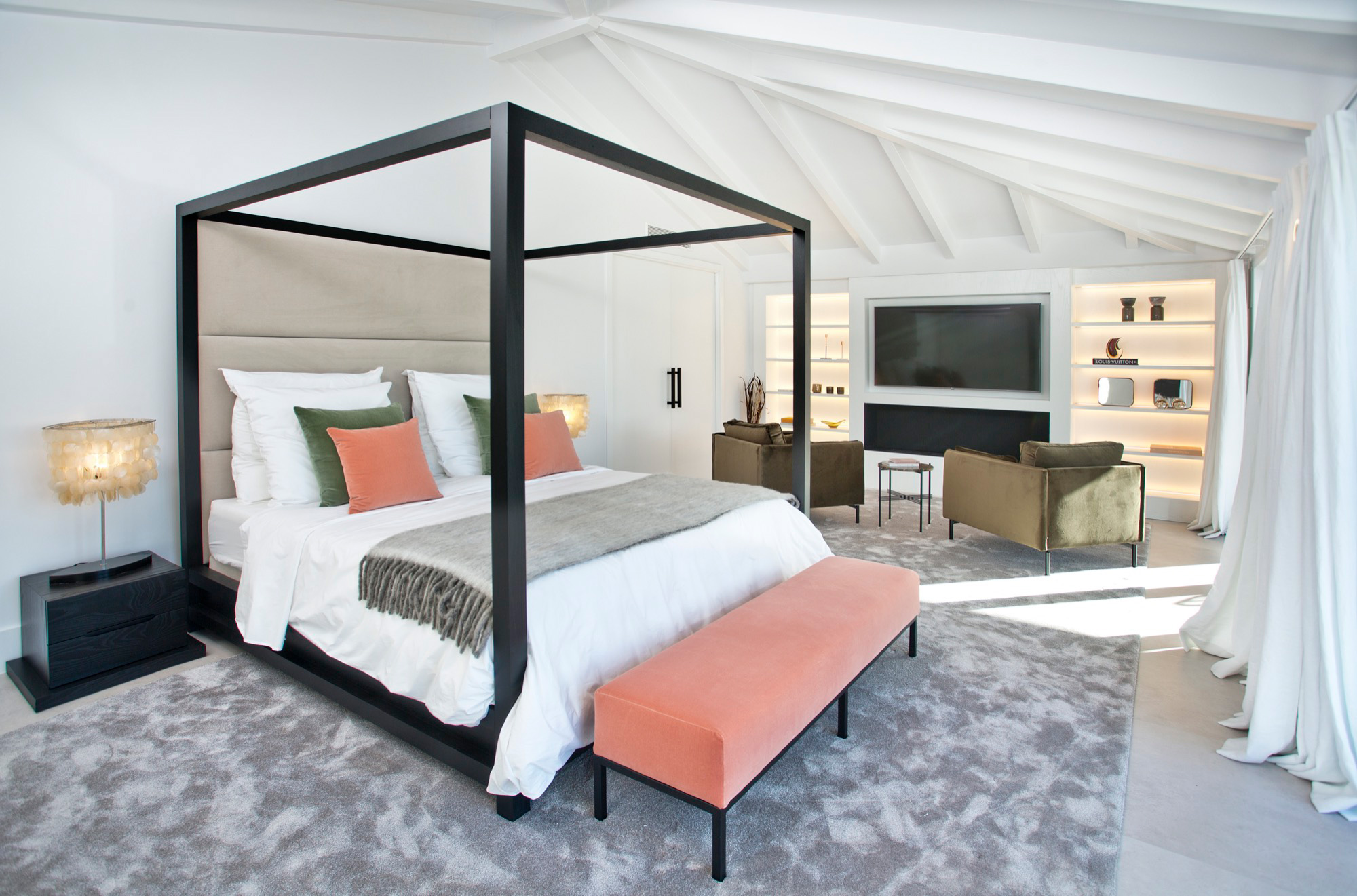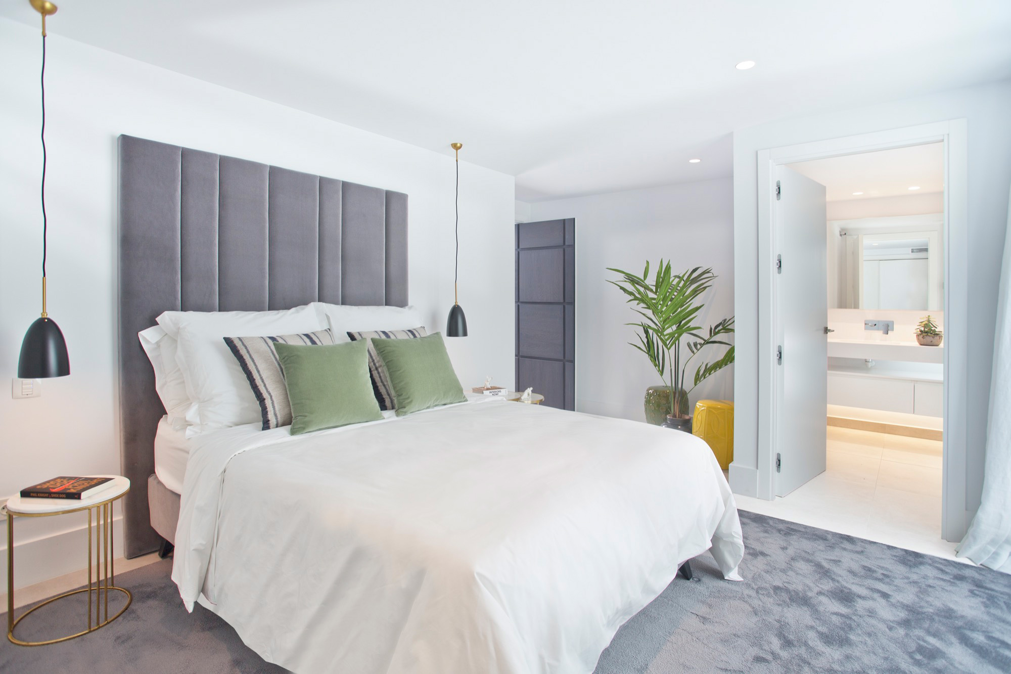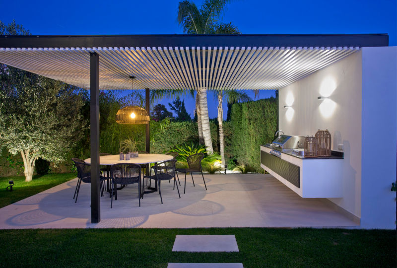 Modern elegant home combining classic exterior architecture with contemporary interiors and offering panoramic views towards the golf course and sea.